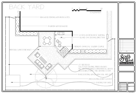 A South West Fence & Decks’ Designer will visit your home to assess your desire for an Outdoor Living Project, measure your yard, and develop a preliminary drawing of your new outdoor living space. Back at our office, the designer will create a more detailed drawing for you with the aid of the most up to date design technology, including the use of Computer Aided Design (CADD). A cost estimate will also be generated at this time.