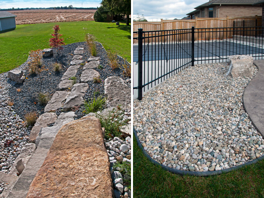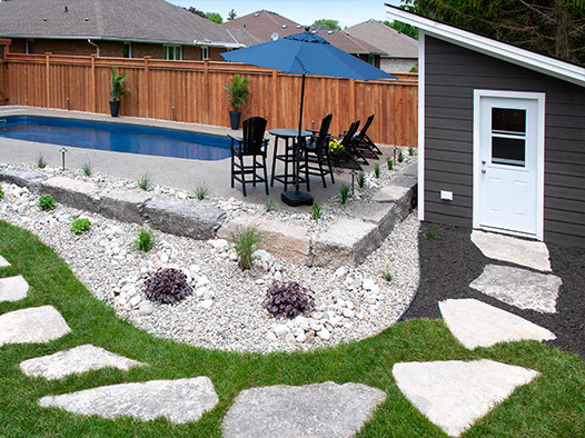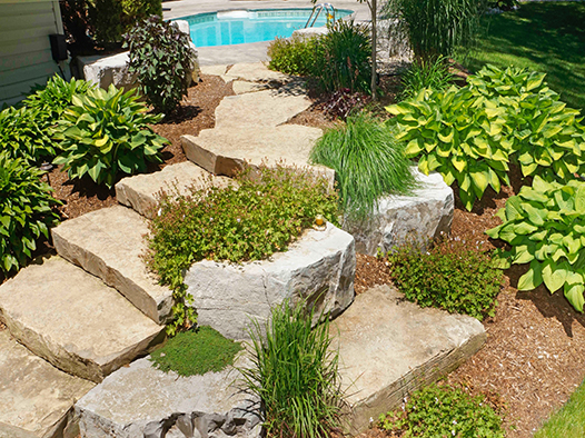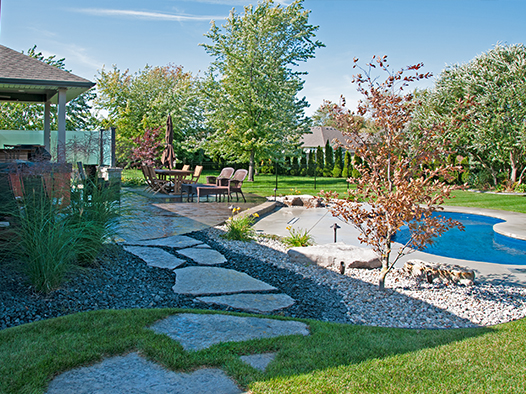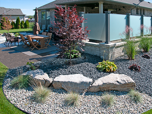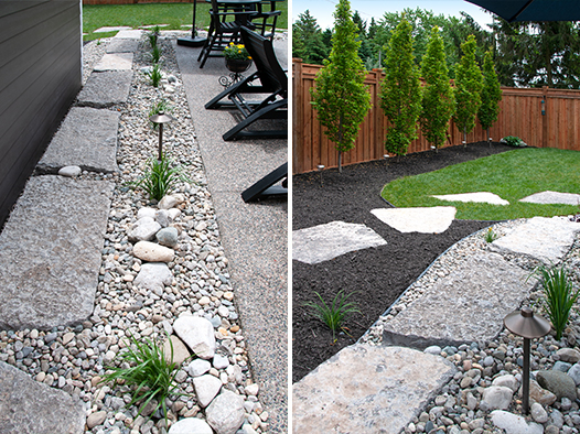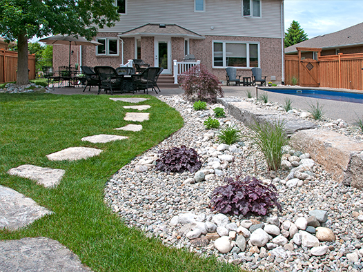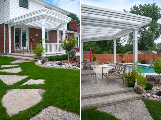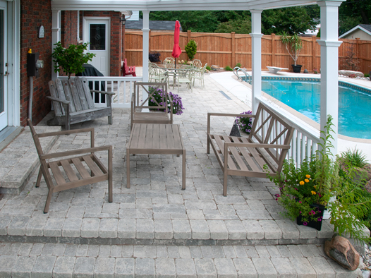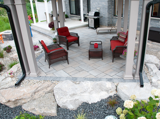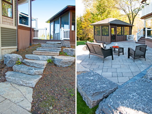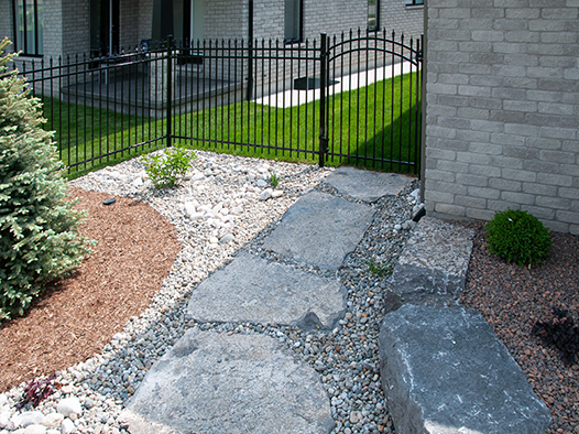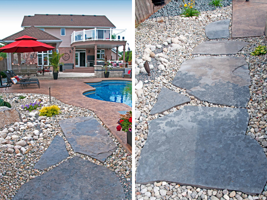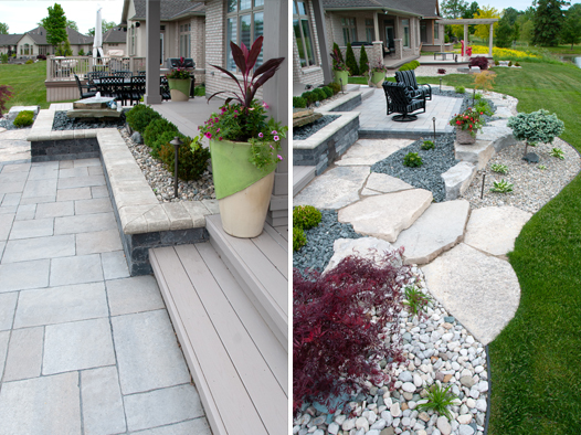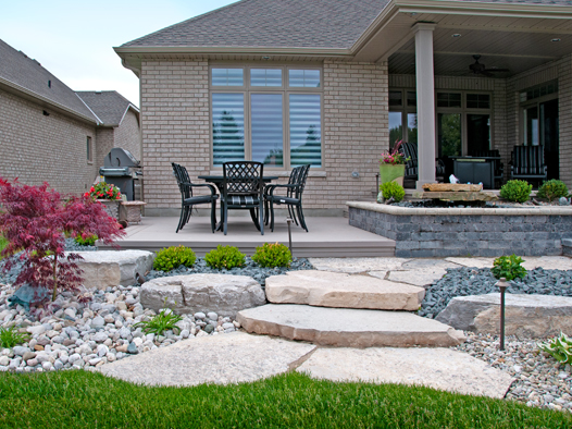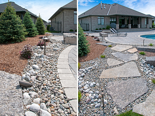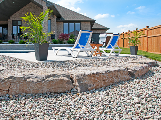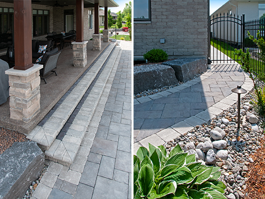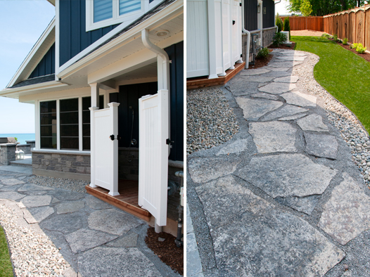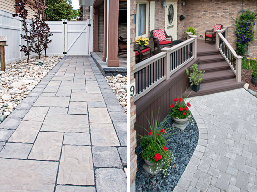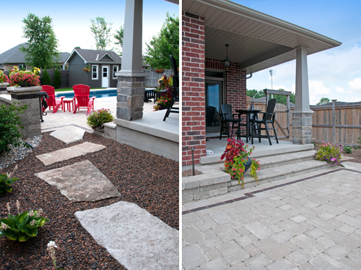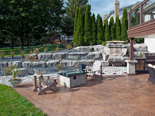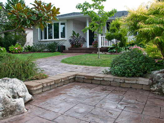 We offer creatively-designed, free-flowing walkways and patios in concrete, stamped concrete, interlocking stone and flagstone.