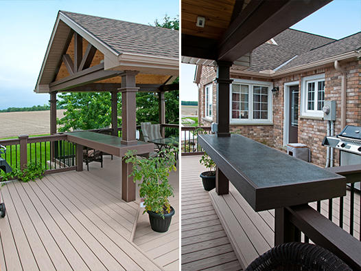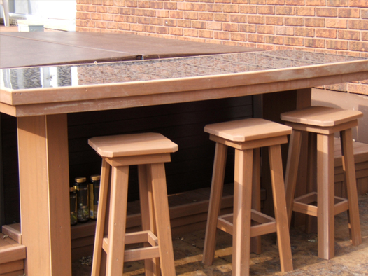 Do you enjoy outdoor entertaining, getting together with family and friends, pool parties, and barbeques? Bring it all together with a custom outdoor bar. It can be built with the product of your choice; whether it is low-maintenance composite/vinyl, or the natural look of wood.