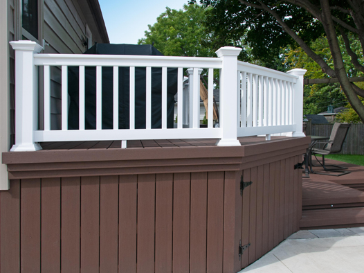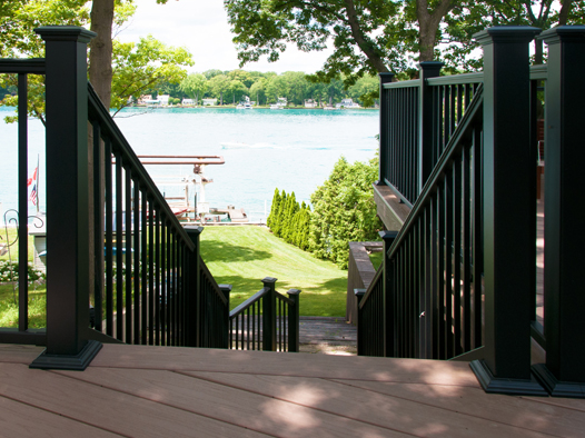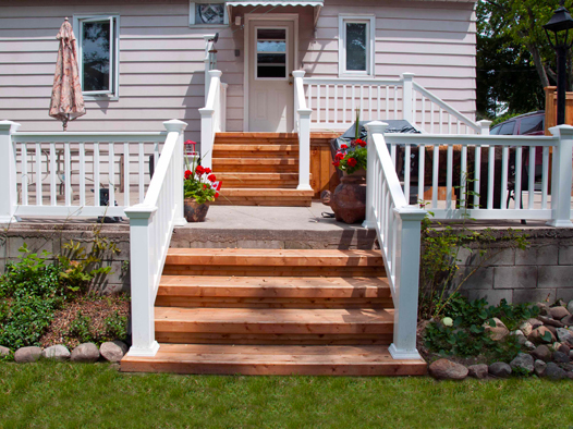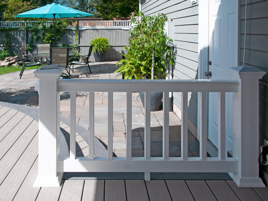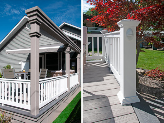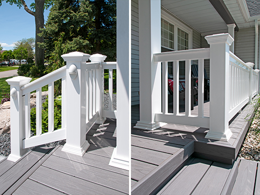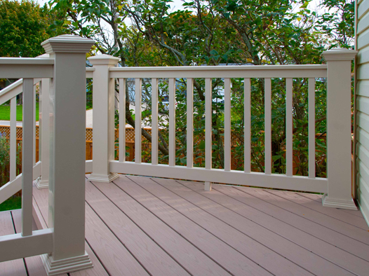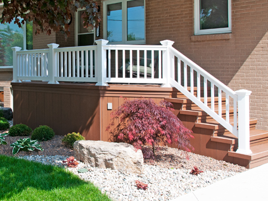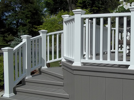 With several different colors and styles to choose from, we are sure to provide that perfect accent for your home. Each and every vinyl rail system is custom built with pride and precision on our state-of-the-art, computerized CNC boring machine. We install our railings onto your existing decks, porches and stairs with little to no limitations.